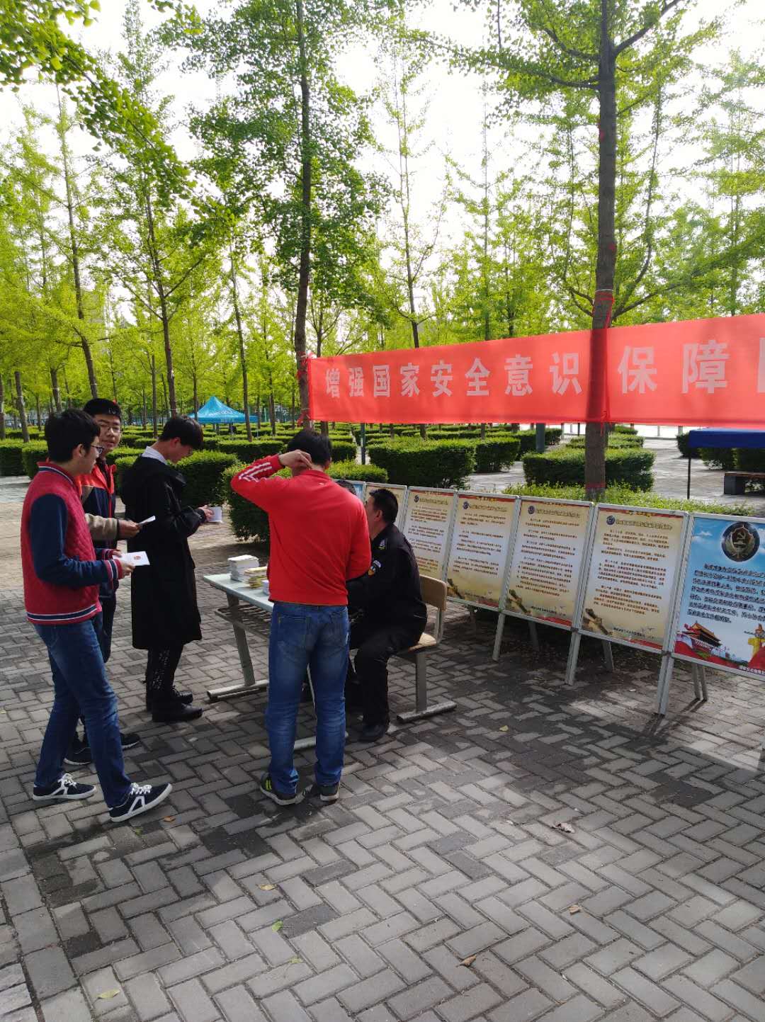 今年4月15日是第三个国家安全教育日,为加强全校师生对国家安全的认识,引领大家关注国家安全,提升爱国主义意识,4月14日至4月16日,保卫处在两校区悬挂国家安全主题标语,在长安校区开展了“4.15”国家安全主题宣传活动,布置了国家安全图片宣传展板,介绍国家安全相关知识,现场向师生发放《国家安全法》《反恐怖主义法》《反间谍法》《国家情报法》宣传手册400余份,收到较好效果。